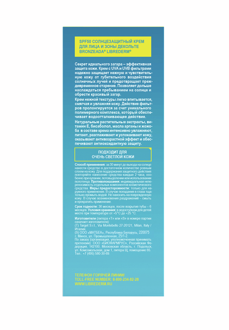 Крем Librederm солнцезащитный для лица и зон декольте Spf50, 50мл