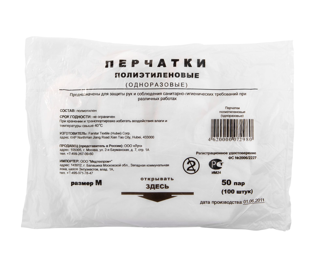 Перчатки полиэтиленовые одноразовые, 50 пар. Размер изделия: М. Изготовлены из экологически чистых, гипоаллергенных материалов (полиэтилен высокого давления). Область их применения чрезвычайно широка: медицинские учреждения, предприятия общественного питания, клининговые организации. Размер упаковки: 22 х 22 х 1 см.