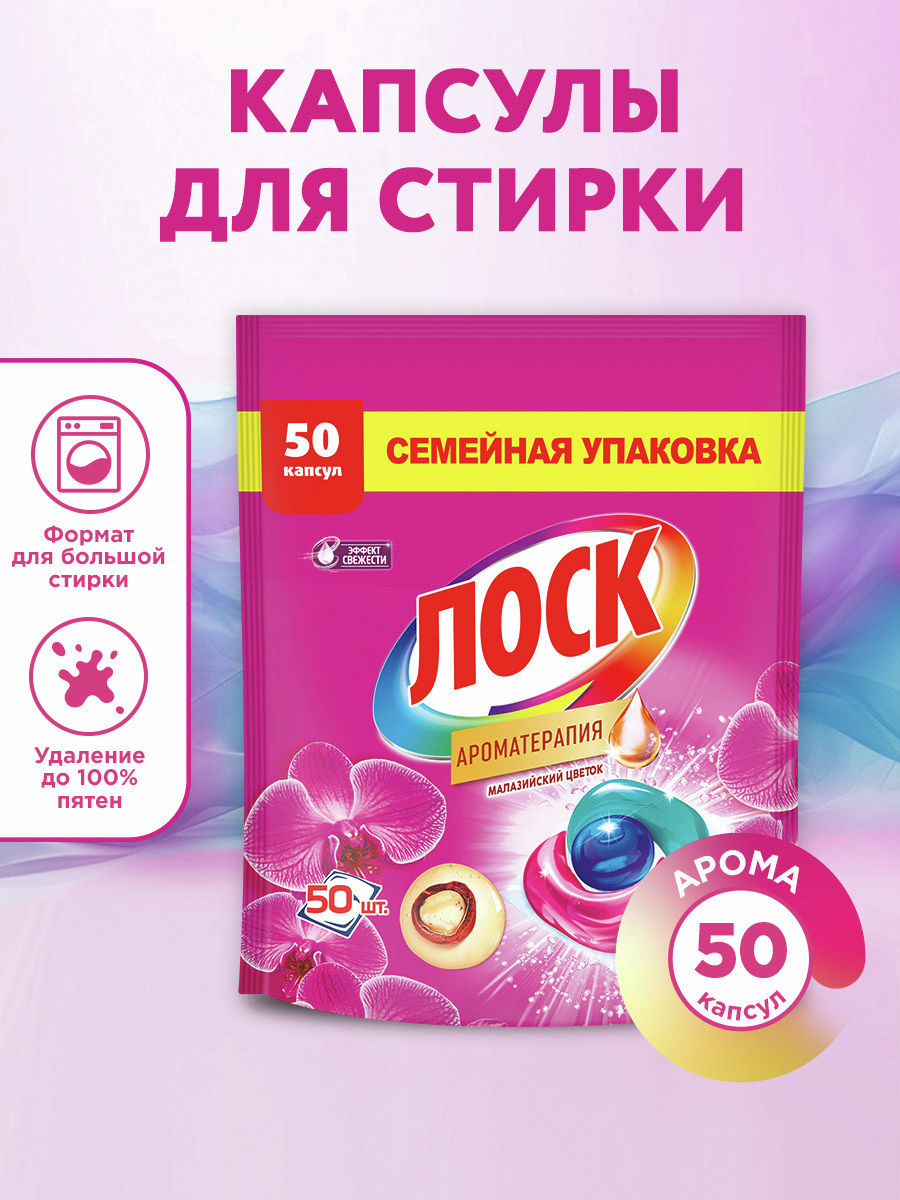 Капсулы для стирки Лоск Ароматерапия Малазийский цветок, 50шт
