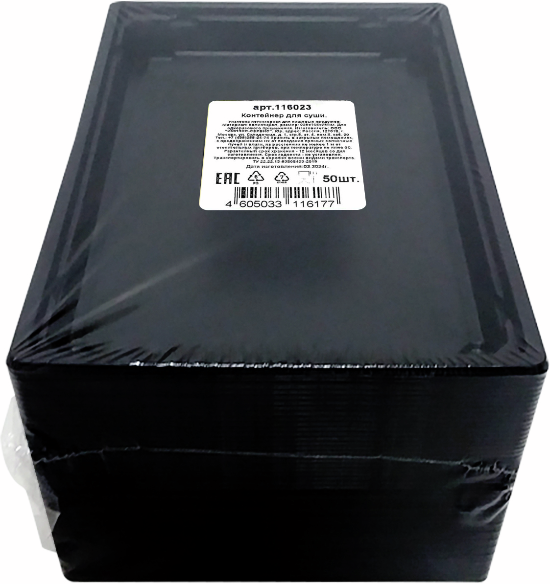 Контейнер для суши из полистирола черный 23.5 x 16.5 x 2.5см, 50шт