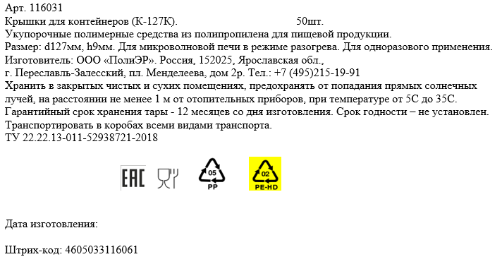 Одноразовая пластиковая крышка для контейнера рекомендованного для хранения салатов, холодных блюд. Крышка изготовлена из полипропилена.Крышка для контейнеров, которые используют для упаковки полуфабрикатов, мороженого и готовых изделий, удобны для транспортировки и хранения широкого ассортимента продукции.