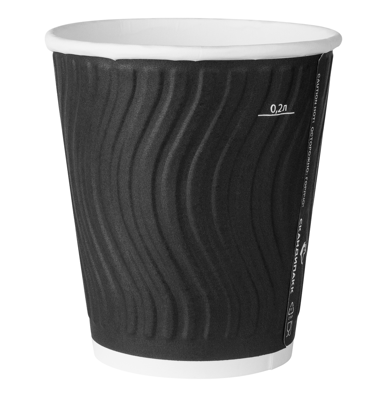 RIOBA Стакан бумажный черный волна 200мл, 50шт