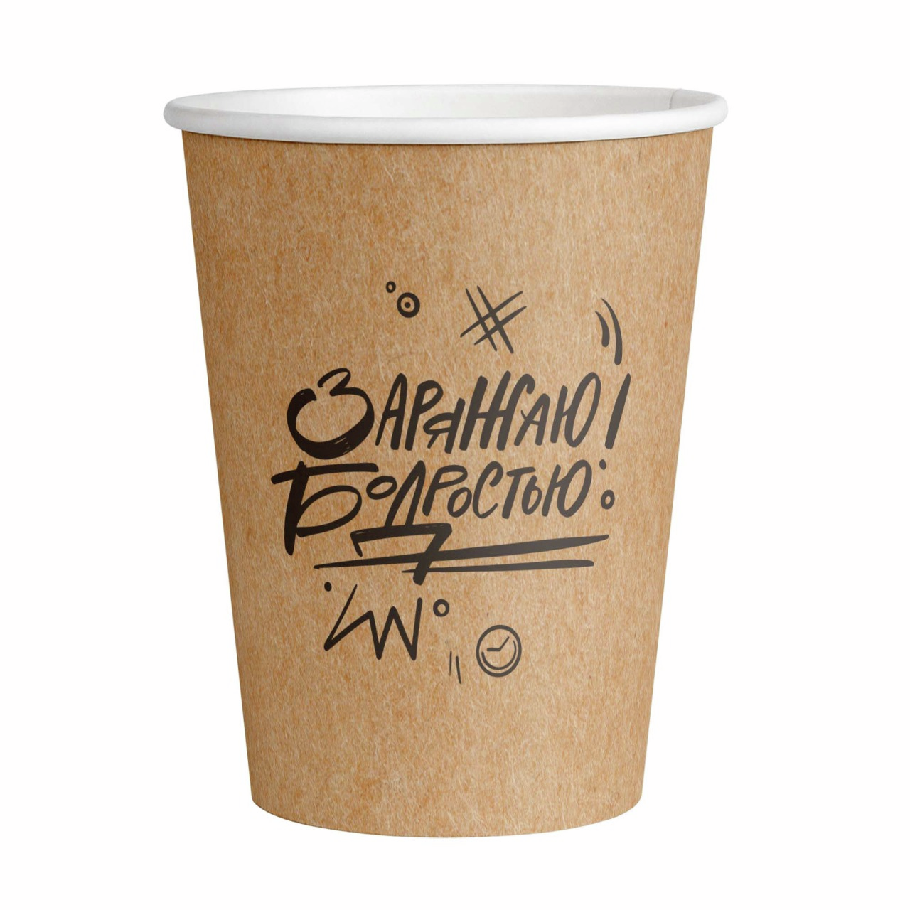 Стакан одноразовый Vip Заряжаю бодростью бумажный коричневый 300мл, 50шт