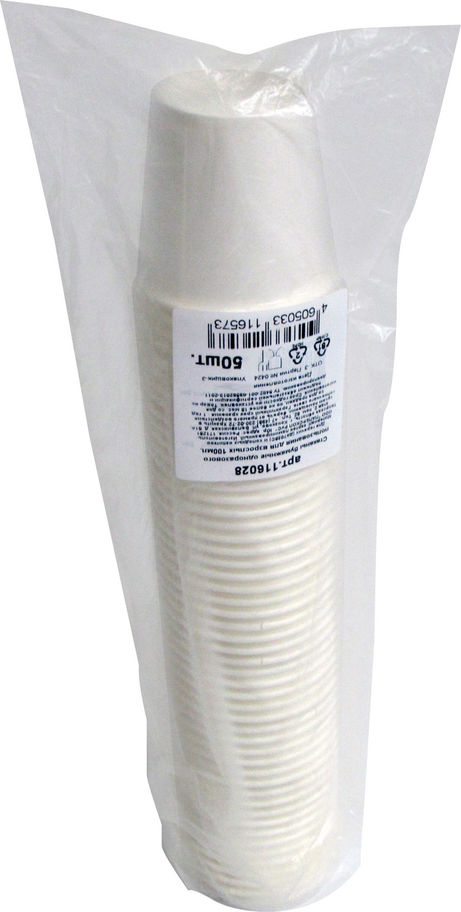 Стакан одноразовый бумажный белый 100мл, 50шт