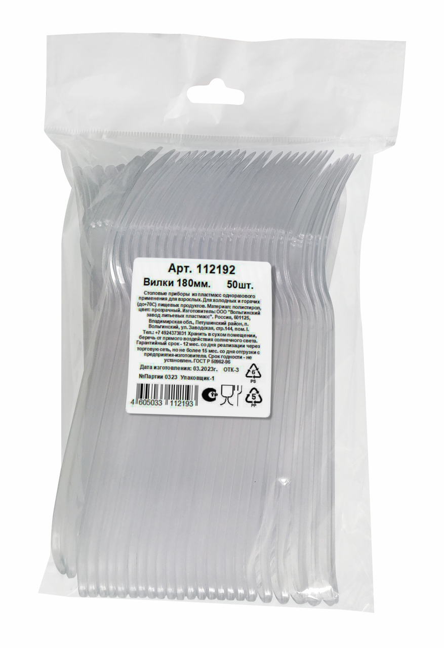 Вилка одноразовая пластиковая прозрачная 18см, 50шт