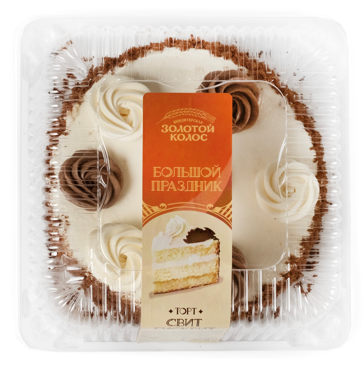 Классический бисквит, сливочный крем, абрикосовая начинка. Декор: сливочный и шоколадный крем. Можно употреблять в качестве десерта или как самостоятельное лакомство.