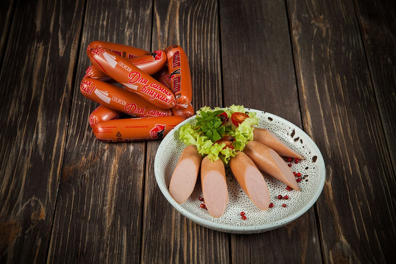 Сосиски Фабрика качества Для самых близких вареные, 550г – натуральный продукт, произведенный из отборных ингредиентов по оригинальной технологии. Гармоничное сочетание свинины и говядины с добавлением ароматных специй определяет идеальный вкус деликатеса. Лучшее решение для сытной трапезы.