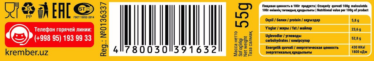 Кекс Krember Cake Up глазированный кокосовый с какао начинкой, 55г