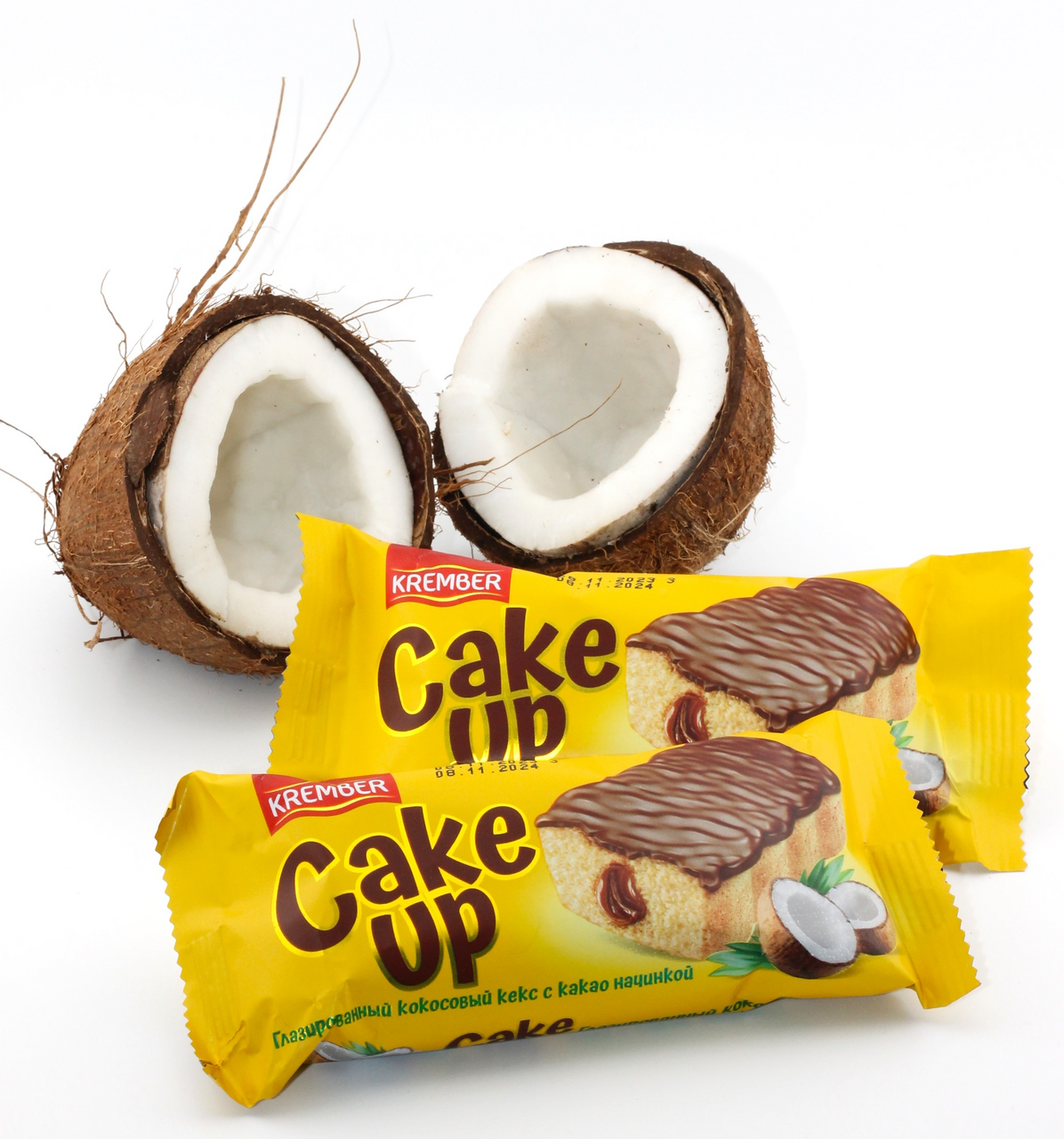 Кекс глазированный Cake Up кокосовый с какао начинкой представляет собой сочетание нежного кокосового вкуса и ароматной глазури. Начинка из кокоса и какао придает продукту неповторимый вкус и делает его отличным дополнением к чаю или кофе.