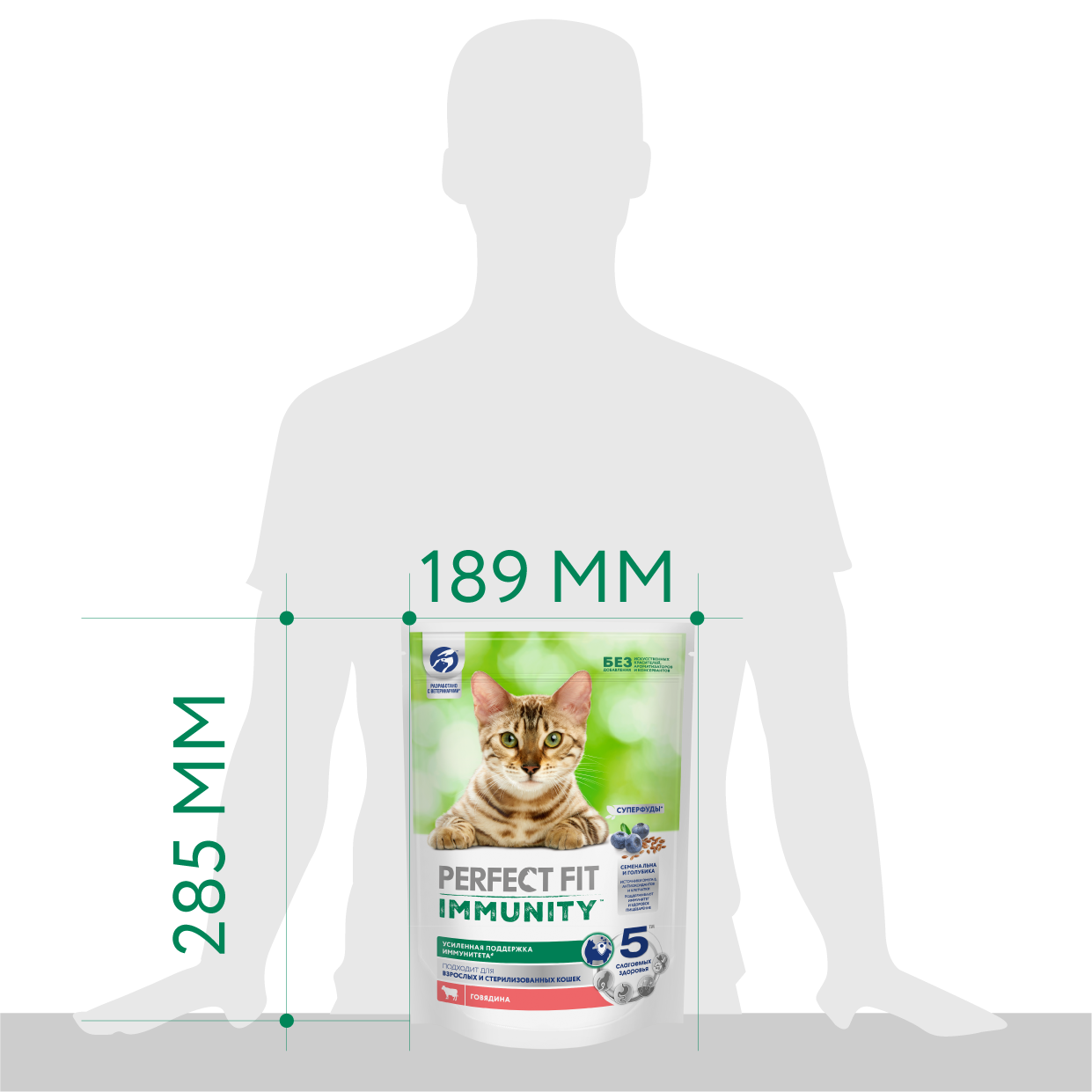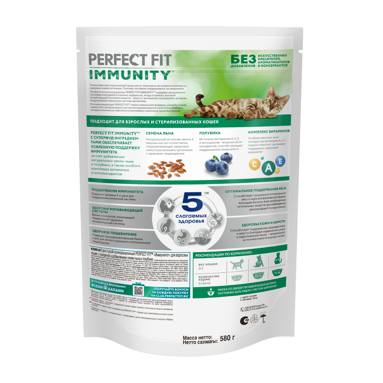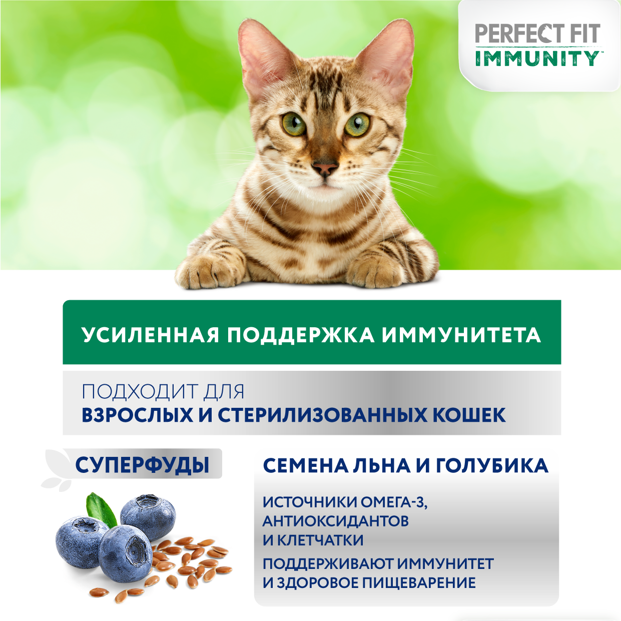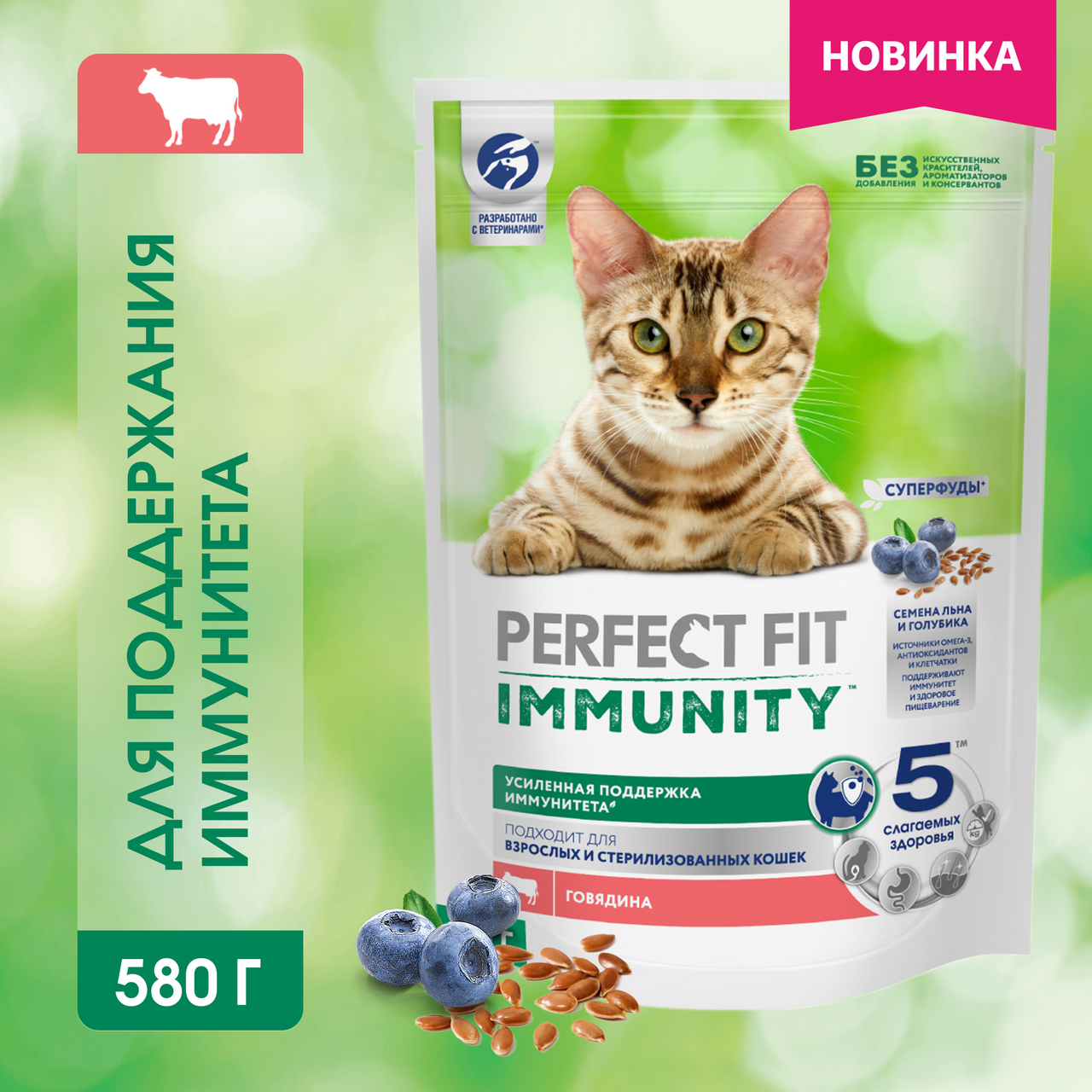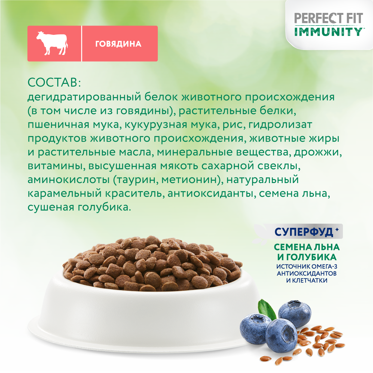 Корм сухой Perfect Fit Immunity для кошек говядина-лен-голубика, 580г