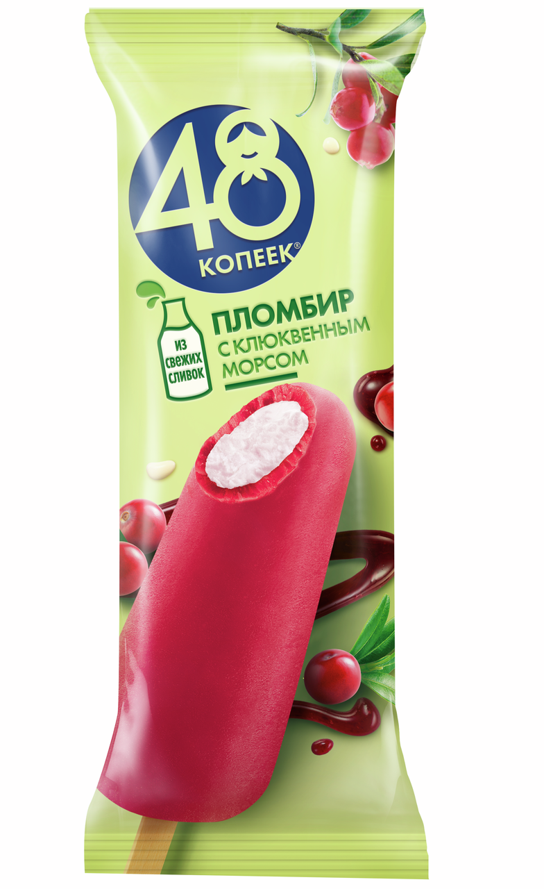 Мороженое пломбир 48 копеек во фруктовой глазури с клюквенным морсом эскимо, 58г