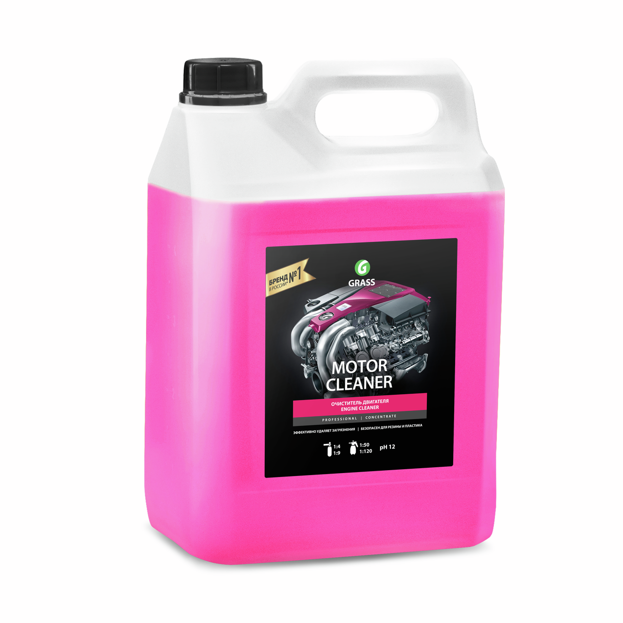 Чистящее средство. Предназначено для наружной очистки подкапотного пространства (двигателя и его частей) от масляных пятен, подтеков смазки, налипшей пыли и других загрязнений. Мощная щелочная формула позволяет очистить даже самые застарелые загрязнения. Средство автохимии Grass Motor Cleaner предназначено для очистки моторного блока и частей двигателя от масляных пятен, потеков смазки, налипшей пыли и другой дорожной грязи. Позволяет поддерживать чистоту моторного отсека. Средство отлично справляется с налипшей грязью, масляными пятнами, пылью или смазкой. Способ применения: Заглушите двигатель, отсоедините клеммы от аккумуляторной батареи и дайте мотору остыть. Разведите концентрат с водой из расчета 1:4-1:9 (100-200г) в пенокомплект (1л) или 1:50-1:120 (8-20г/л) для помп��вого распылителя, в зависимости от степени загрязнения. Водой под давлением на расстоянии не менее 1 метра сбить с загрязненной области верхний слой пыли, после чего нанести разбавленный состав на обрабатываемую поверхность. Для сильно загрязненных участков рекомендуется использовать щетку или кисть. Выдержать 1-2 мин., не допуская высыхания, после чего тщательно смыть водой.