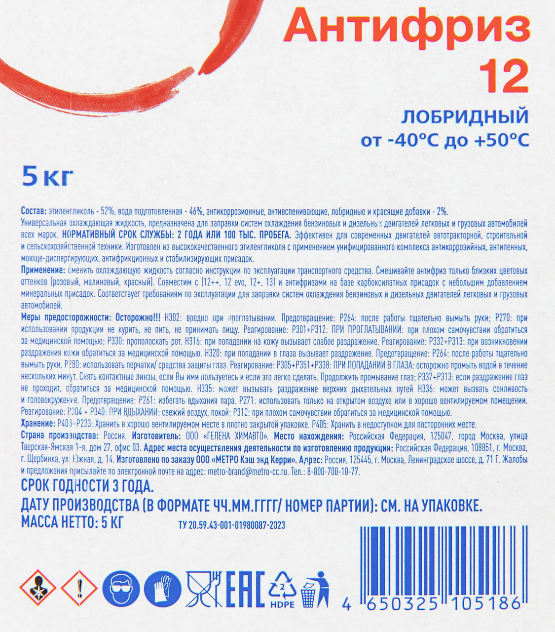 Карбоксилатный антифриз последнего поколения предназначен для использования в системах охлаждения двигателей внутреннего сгорания. Изготовлен с применением уникального пакета присадок, что позволяет оставаться антифризу неизменным в течение всего срока эксплуатации и обеспечивает длительную защиту от высокотемпературной коррозии цветных металлов. Совместим со всеми типами охлаждающих жидкостей на основе этиленгликоля и органических ингибиторов коррозии.