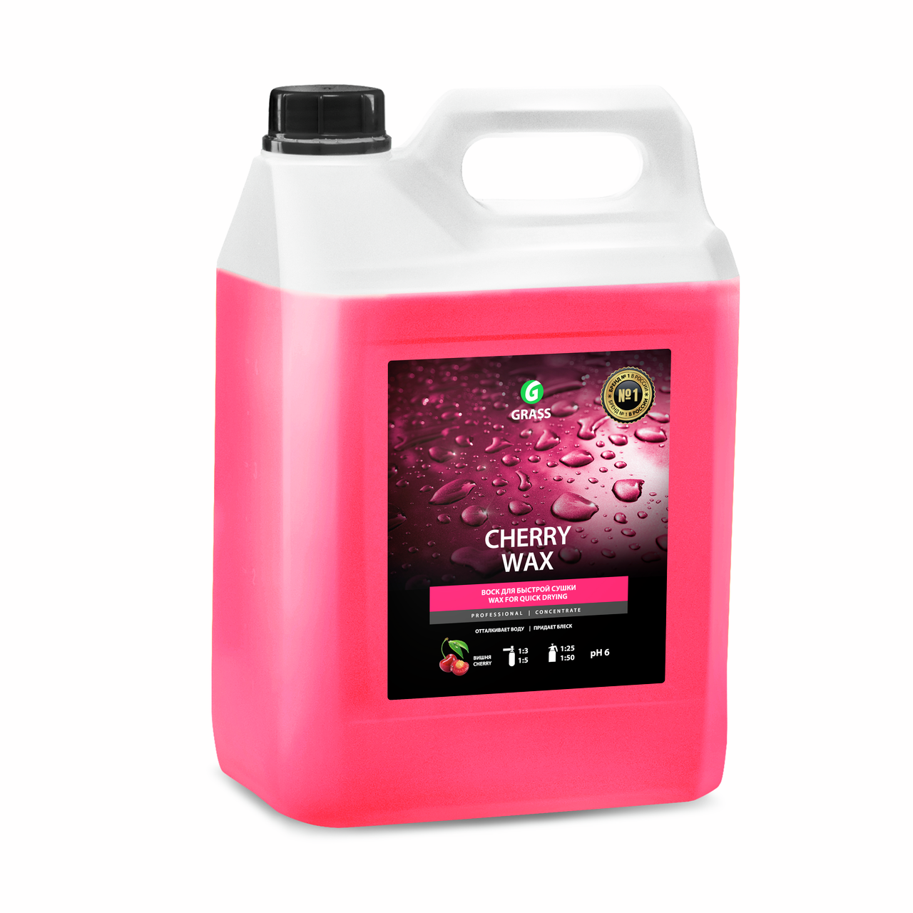 Воск Grass Cherry холодный, 5кг - воск. Концентрированный эффективный продукт, защищающий автомобиль от внешних воздействий окружающей среды. Обладает высокой водоотталкивающей способностью, ускоряя процесс высыхания кузова после мойки. Придает дополнительный блеск и антистатические свойства. Не пачкает и не повреждает стекла. Эффективен даже при использовании жесткой воды и низких температурах. Может использоваться в мойках тон��ельного и портального типа. Концентрированный эффективный продукт, защищающий автомобиль от внешних воздействий окружающей среды. Обладает высокой водоотталкивающей способностью, ускоряя процесс высыхания кузова после мойки. Придает дополнительный блеск и антистатические свойства ЛКП. Не пачкает и не повреждает стекла. Эффективен в любое время года. Способ применения: Для распылителя концентрат разбавить с водой в пропорции 1:25 (1:50) или 20-40 г/л. Для пенокомплекта разбавить с водой в пропорции 1:3 (1:5) или 300-200 г/л. Нанести на предварительно очищенную поверхность. Излишки средства смыть водой под давлением. Через автоматическую систему дозирования: разбавить согласно инструкции по эксплуатации моющего оборудования.