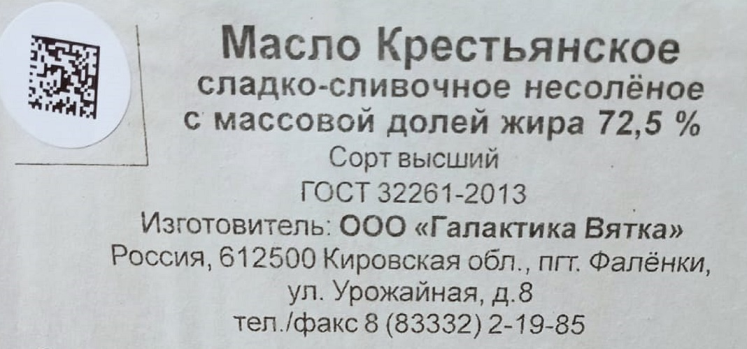 Масло сливочное Крестьянское ГОСТ 72.5%, 5кг