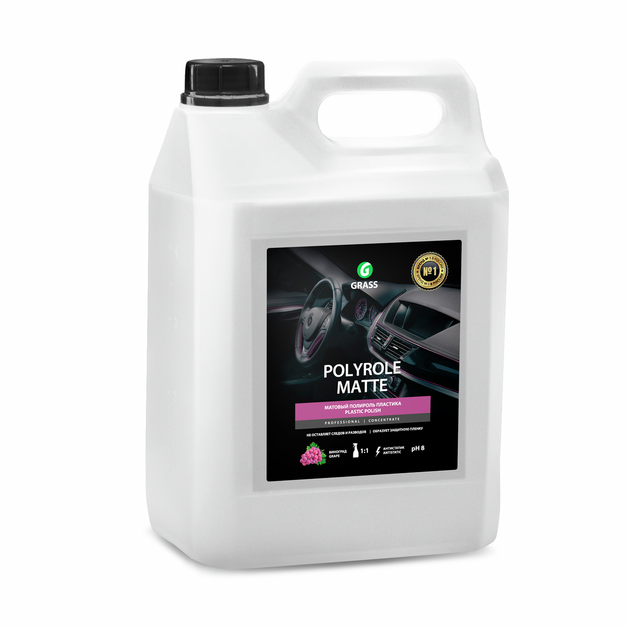 Полироль Grass виноград пластика, 5кг - профессиональный матовый полироль Grass Polyrole Matte для обработки приборных панелей, очистки и полировки изделий из кожи, дерева винила, пластика и резины, не оставляет жирных пятен, препятствует оседанию пыли придает матовый блеск, обладает приятным ароматом. Профессиональный матовый полироль для обработки приборных панелей, неокрашенных бамперов, покрышек, для очистки и полировки изделий из кожи, дерева, винила, пластика и резины. Очиститель пластика сохраняет первоначальный цвет, не оставляет жирных пятен, препятствует оседанию пыли, придает матовый эффект. Средство обладает приятным ароматом. Способ применения: Полироль применяется в готовом виде или разводится в пропорции 1:1 с водой. Нанести на поверхность с помощью распылителя или губки, распределить равномерно на поверхности круговыми движениями.