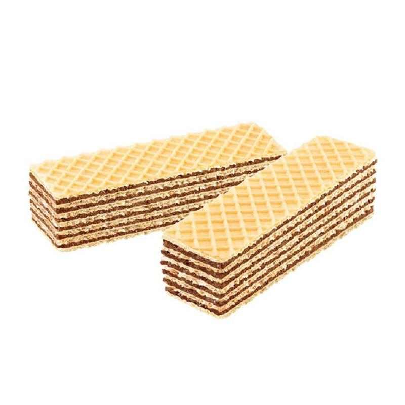 Семислойные вафли с шоколадной начинкой.Основа вафель - нежное печенье, покрытое белым шоколадом.Внутри начинка из шоколадной глазури и кокосовой стружки.