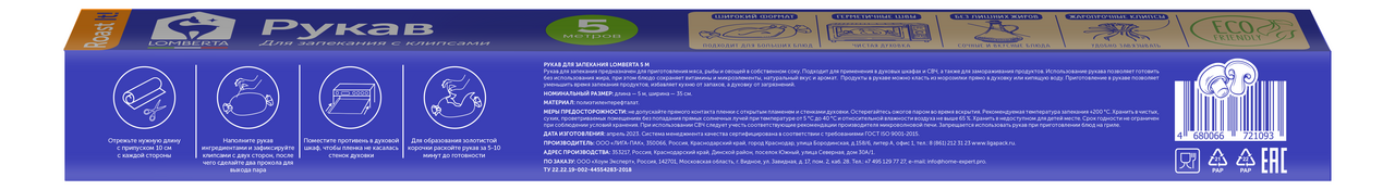 Предназначен для приготовления блюд из мяса, рыбы овощей в собственном соку. Идеальная герметичность спаечного шва защитит духовку от загрязнений. Увеличенная плотность предотвращает разрывы. Удобные жаростойкие клипсы позволяют готовить пищу не только в духовке, но и СВЧ. Упаковка удобна для хранения продукта.