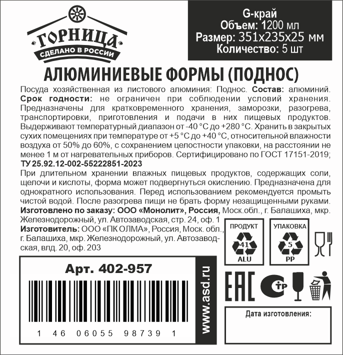 Красиво преподнести еду к столу в полевых условиях поможет алюминиевый поднос Горница среднего размера. Несмотря на то, что данный поднос считается одноразовой посудой, он является стильным, удобным и достаточно прочным. Украсит любой стол как на выездных мероприятиях, так и в стационарных кафе и домашних условиях. Помимо сервировки продуктов алюминиевые подносы можно использовать для разноса напитков в бокалах. Поднос оснащён по краям специальными выемками под пальцы для более удобного и надёжного использования.