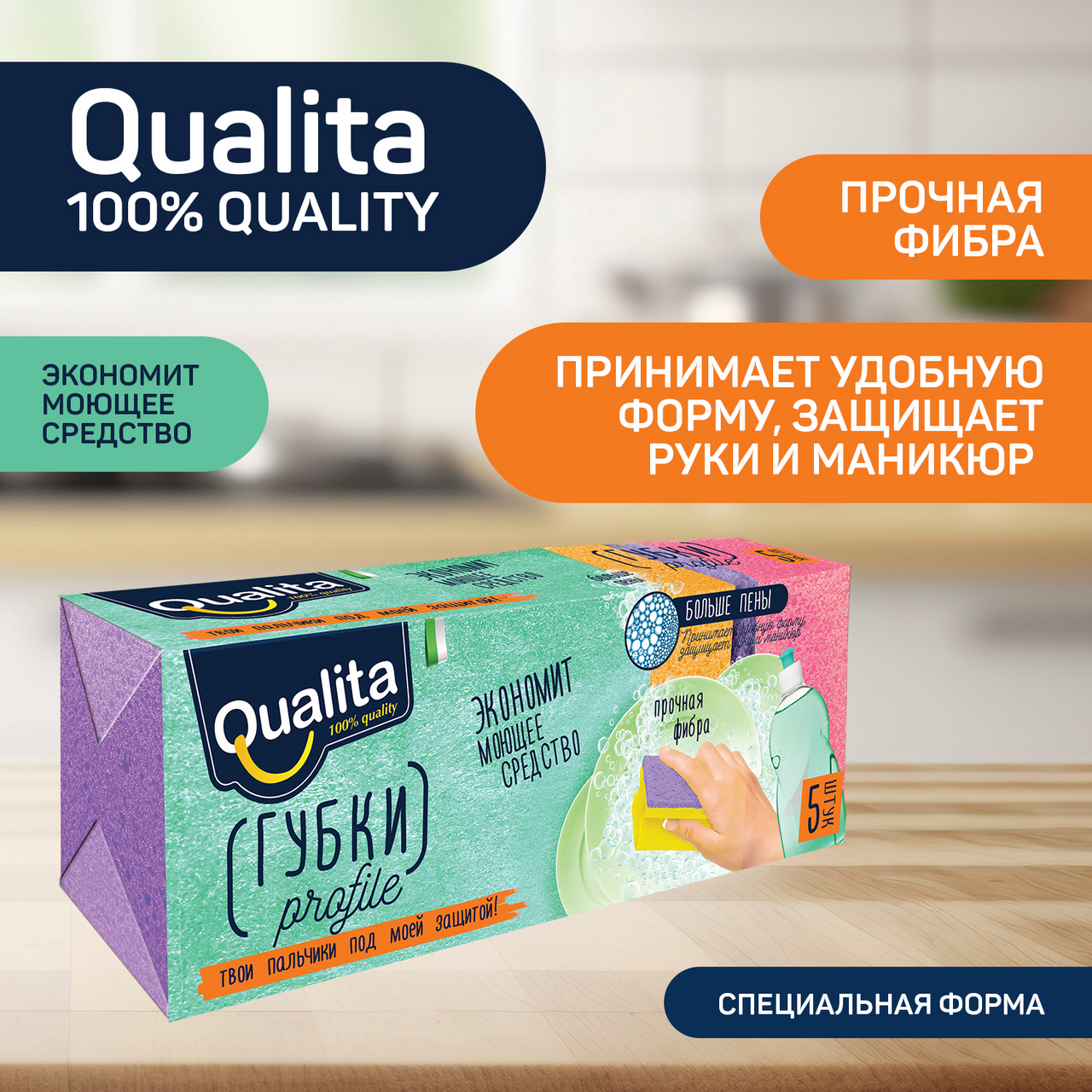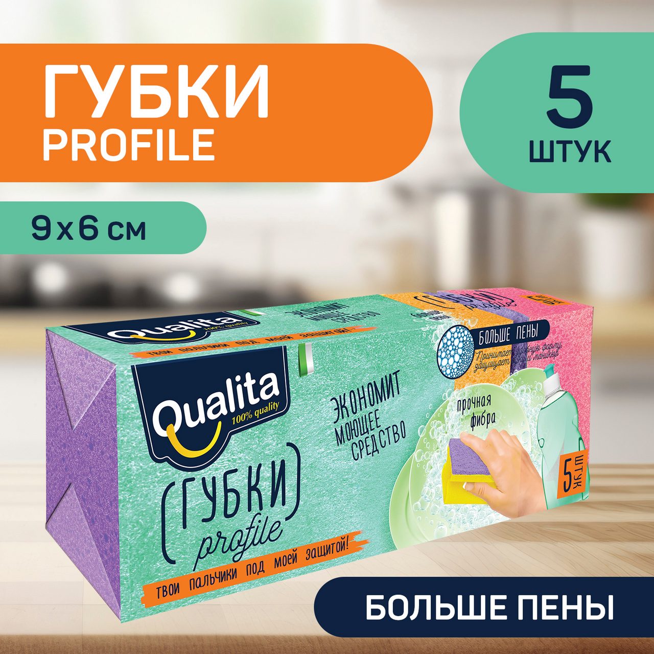 Губка Qualita Profile для посуды 5шт, 9 х 6см