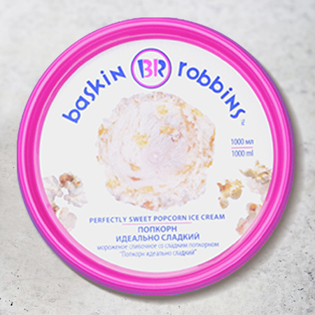Мороженое BASKIN ROBBINS Попкорн идеально сладкий сливочное со сладким попкорном изготовлено из натуральных ингредиентов без добавления заменителей молочных жиров. Аппетитное холодное лакомство подарит наслаждение благодаря приятному сладкому вкусу и принесет пользу организму: утолит голод, зарядит энергией, поднимет настроение, улучшит работу мозга.