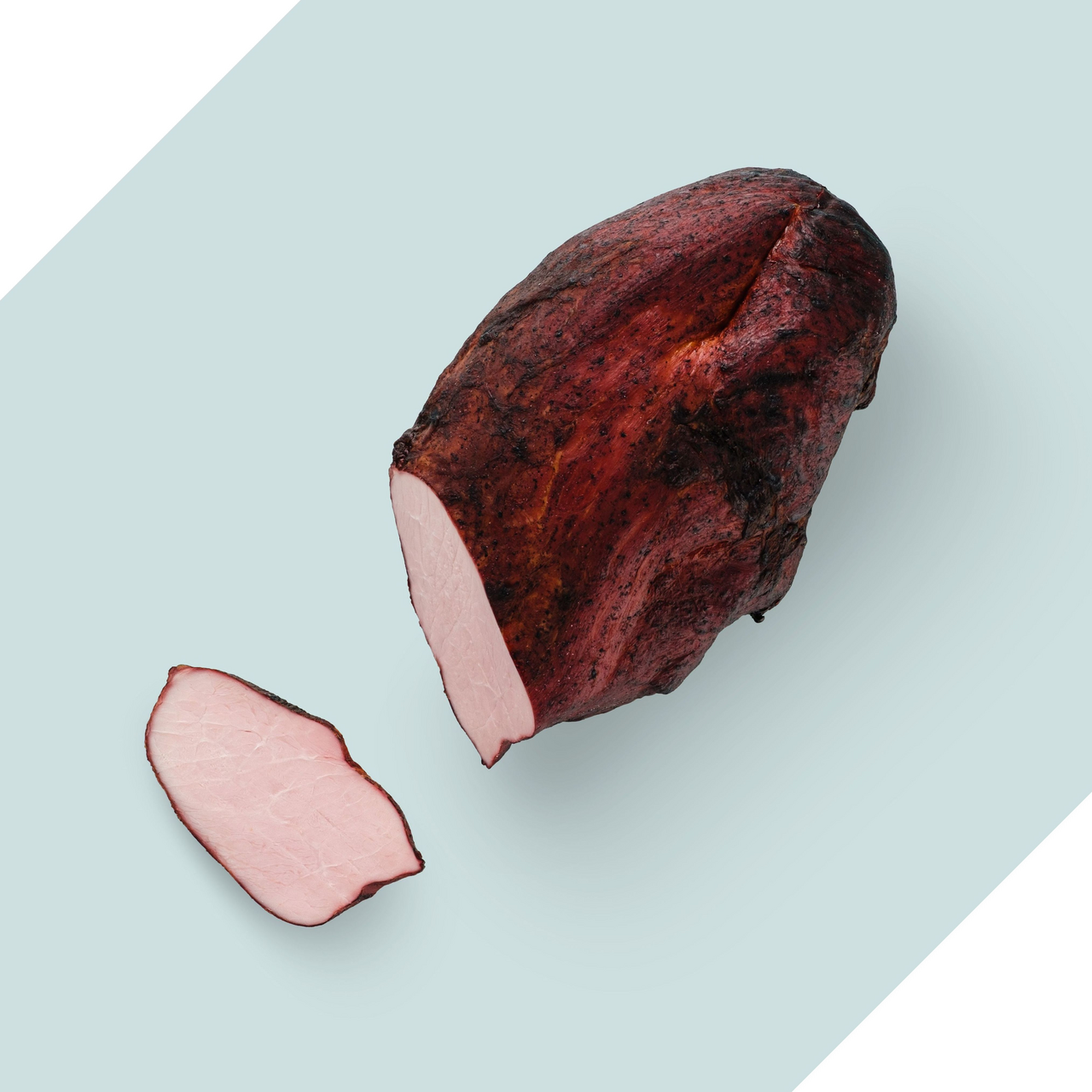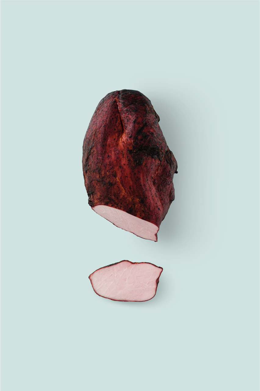 Нежная отборная свинина с прослойкой жира, придающей дополнительную сочность, отваривается в подсоленной воде с добавлением специй. Далее окорок обильно приправляется тёмной декоративной натуральной специей. После этого продукт коптится на натуральных буковых опилках. Благодаря такому производственному циклу окорок получает особенно нежную мраморную и сочную структуру, подчеркнуто натуральный мясной аромат и чрезвычайно красивый внешний вид, где темная корочка резко контрастирует с нежно-розовым цветом на срезе окорока.