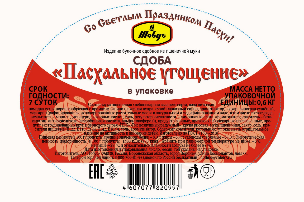 Сдоба Тобус Пасхальное угощение, 600г