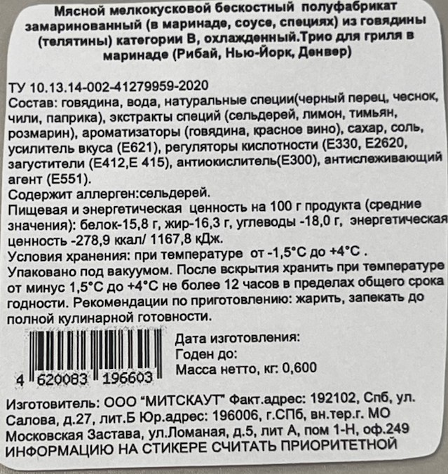 Стейки Мяsoet meat company Трио Рибай, Нью-Йорк и Денвер, 600г