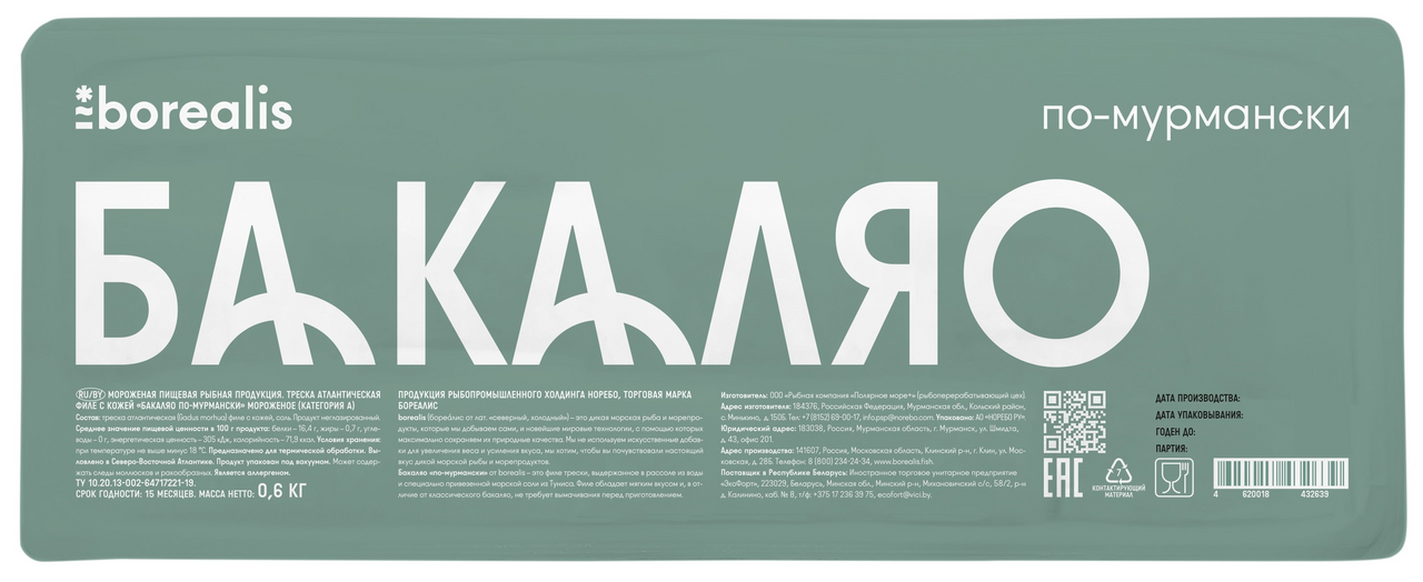 Треска Borealis Бакаляо по-мурмански атлантическая замороженная, 600г