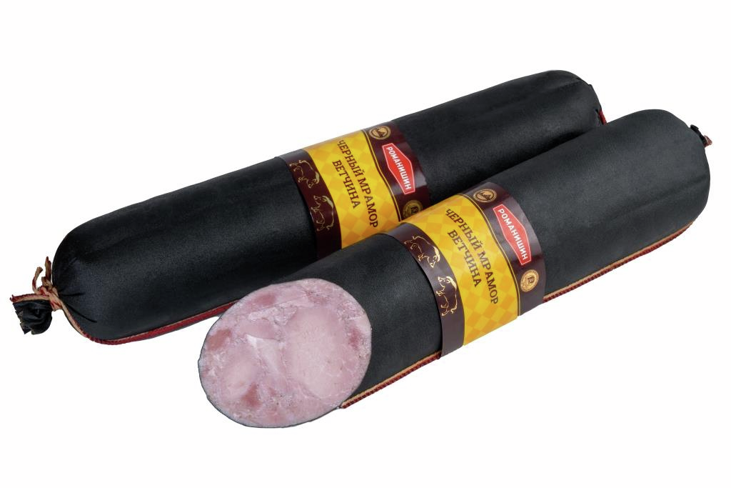 Имеет мраморный мясной срез, красивая черная текстильная оболочка. Это по-настоящему деликатесный продукт, приготовленный по авторскому рецепту из цельных кусков мяса в текстильной оболочке. Для приготовления этой ветчины используется отборный свиной окорок, который приправлен незначительным количеством соли и специй. Сочная, с нежным ветчинным вкусом и ароматом натуральных пряностей. Текстильная оболочка придает оригинальный внешний вид.