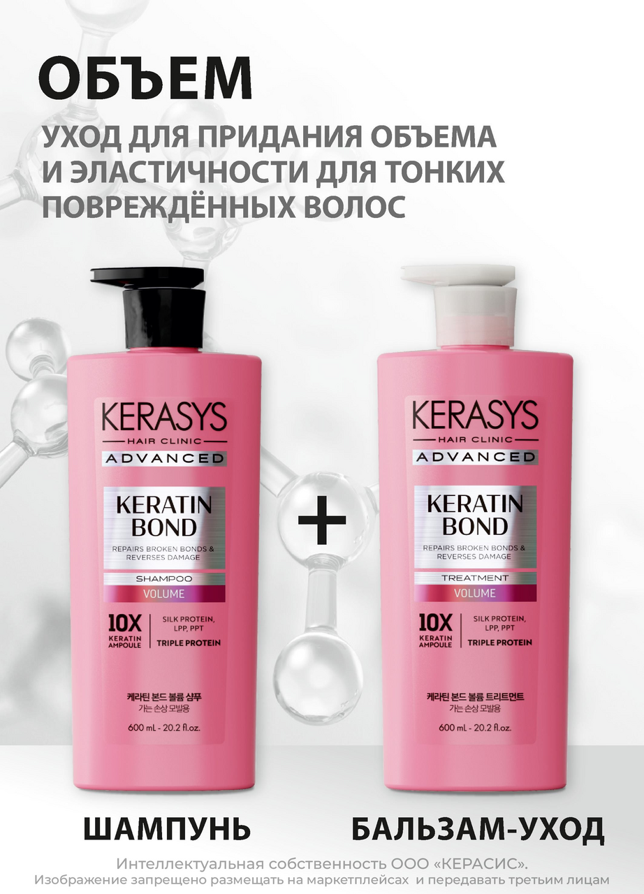 Шампунь Kerasys Advanced Keratin Bond Объем, 600мл