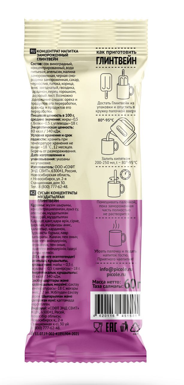 Напиток Picole Глинтвейн замороженный, 60г это концентрат напитка замороженный глинтвейн.