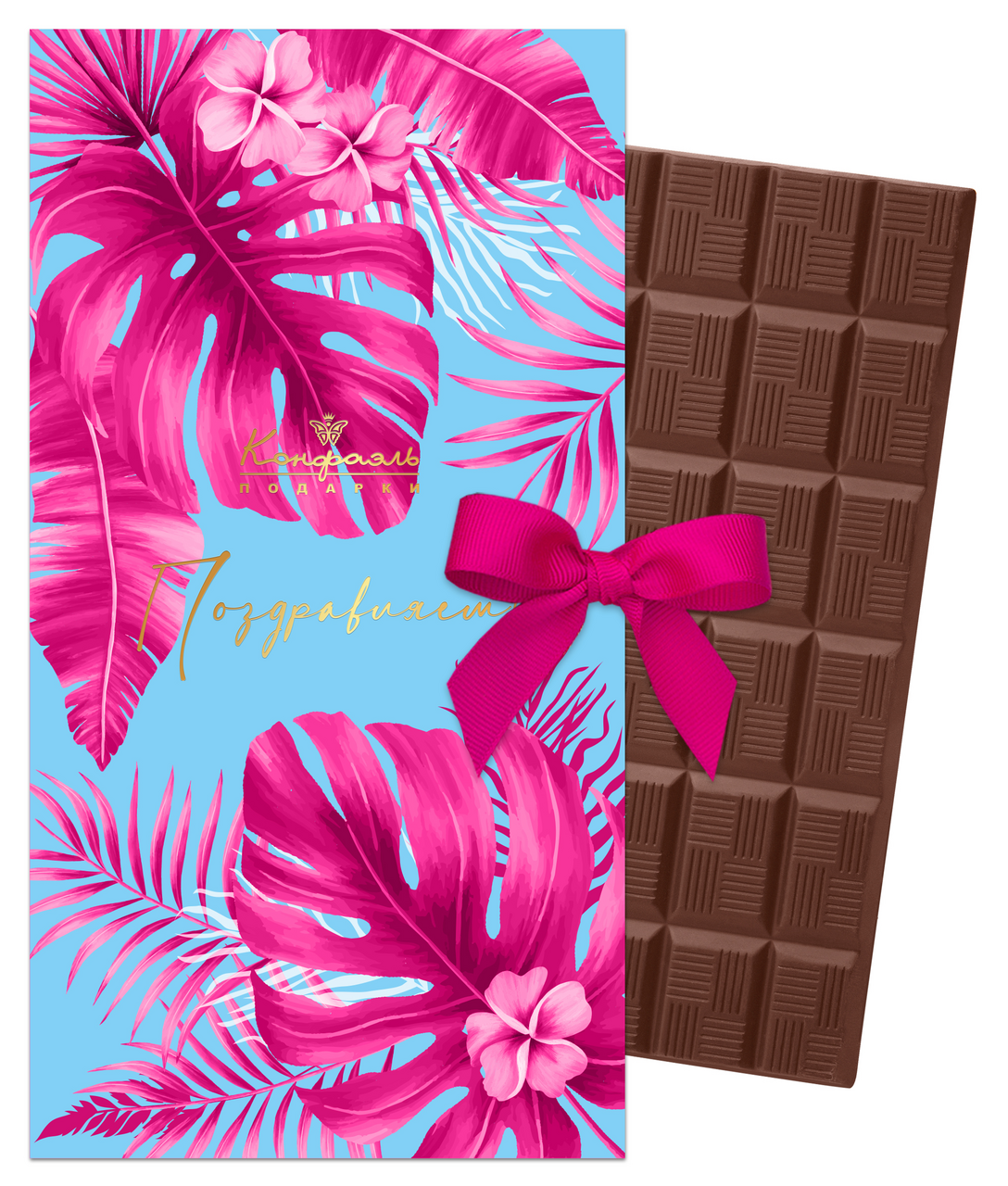 При одном лишь взгляде на эту красивую открытку с пожеланием сразу поднимается настроение. Ведь букет цветов символизирует душевную гармонию и умиротворённость, к тому же внутри упаковки с авторским оформлением находится молочный шоколад, который славится своим нежнейшим вкусом.