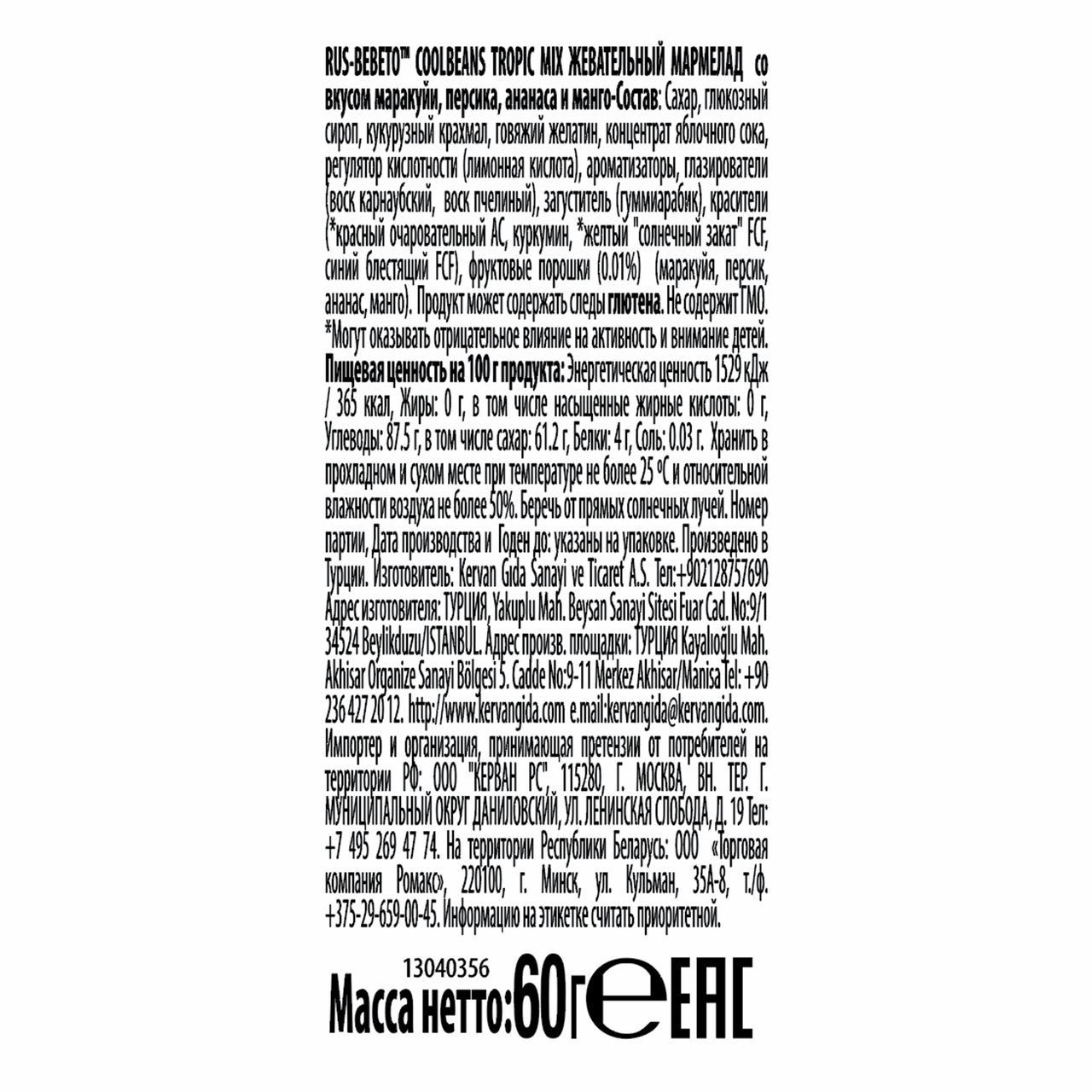 Мармелад жевательный Bebeto Coolbeans Tropic Mix, 60г