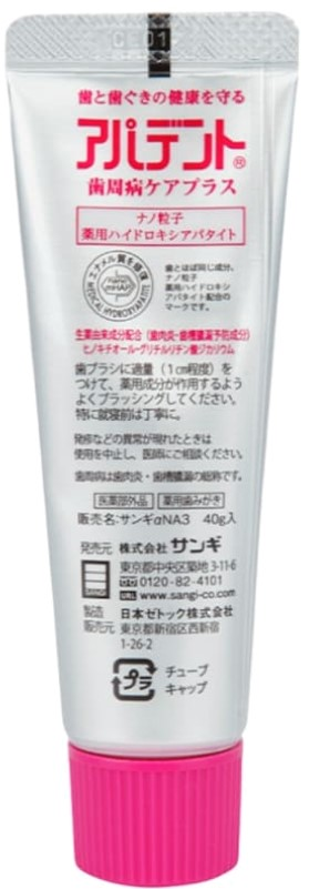 Японская лечебно-профилактическая зубная паста Apadent Perio с океанической солью и Медицинским Нано-Гидроксиапатитом эффективно борется с воспалением и кровоточивостью десен. Океаническая соль и комплекс мощных противовоспалительных компонентов (Бета-глицирризиновая кислота из корня солодки, Цетилпиридиния хлорид) предотвращают развитие воспаления, укрепляют, заживляют, а также выводят жидкость из воспаленной области, тем самым снимая отек тканей. Для реминерализации и укрепления эмали по всей ее глубине в состав включен Медицинский Нано-Гидроксиапатит (NANO) - минерал, из которого на 97% состоит природная эмаль зубов. Благодаря нано-размеру и высокой биосовместимости, частицы Гидроксиапатита Кальция действуют не только на поверхности, но и проникают в глубокие слои эмали и насыщают минералами ослабленные участки. Паста имеет мятно-солоноватый вкус, без лекарственного привкуса. Без фтора. Рекомендуется, в том числе, беременным женщинам и детям, когда они научились сплевывать пасту.
