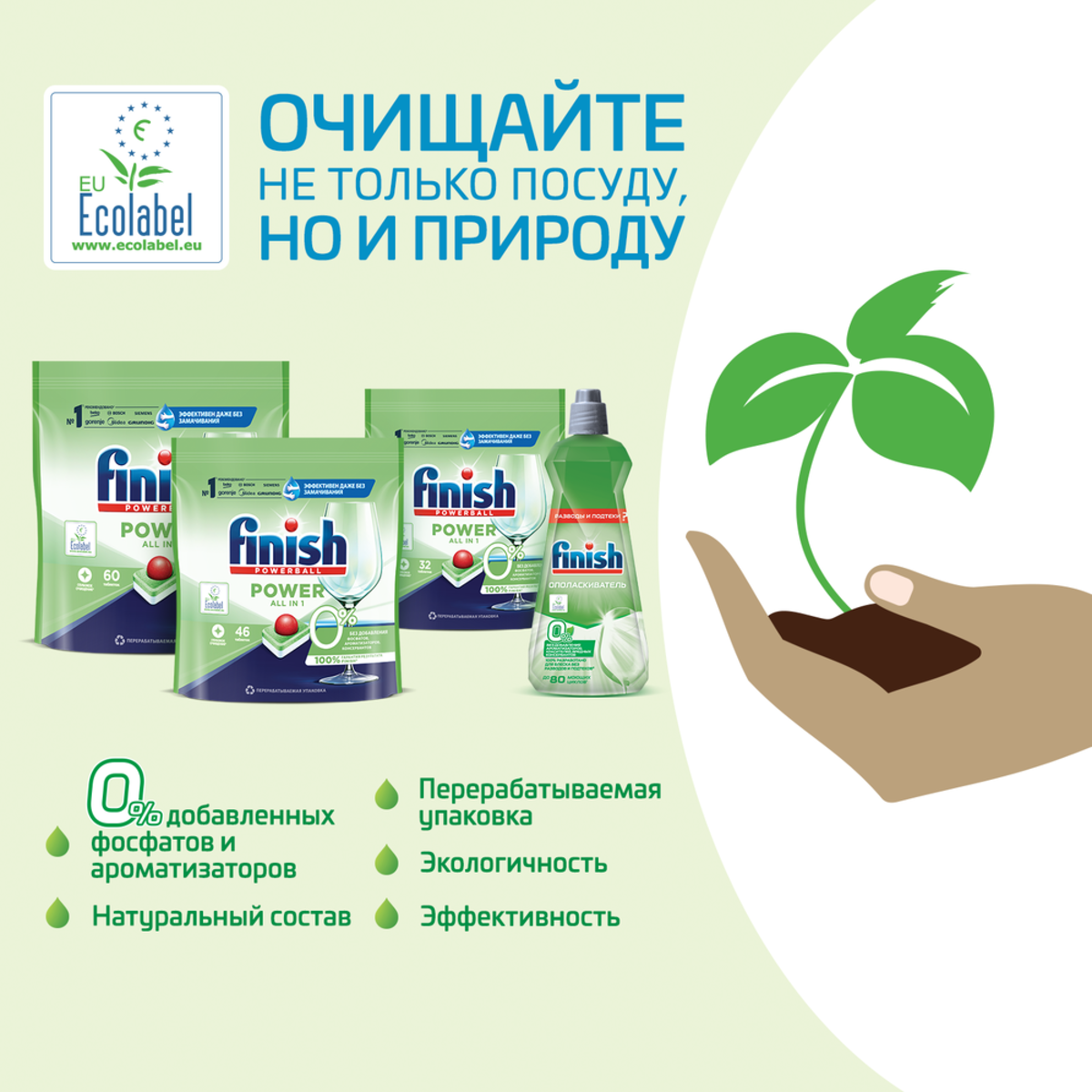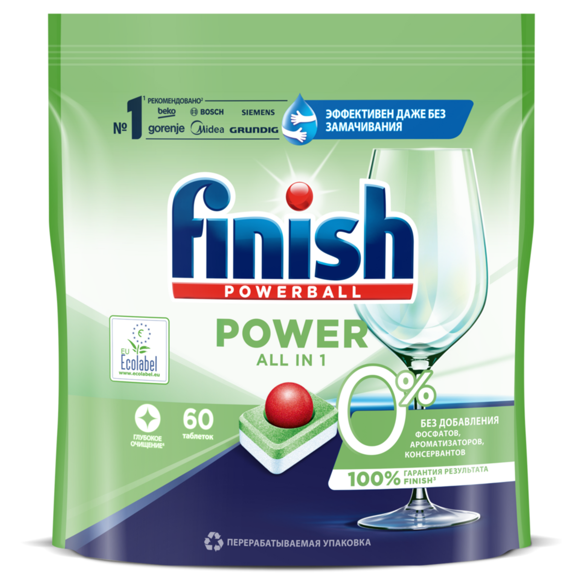 Таблетки для посудомоечных машин Finish 0% бесфосфатные, 60шт