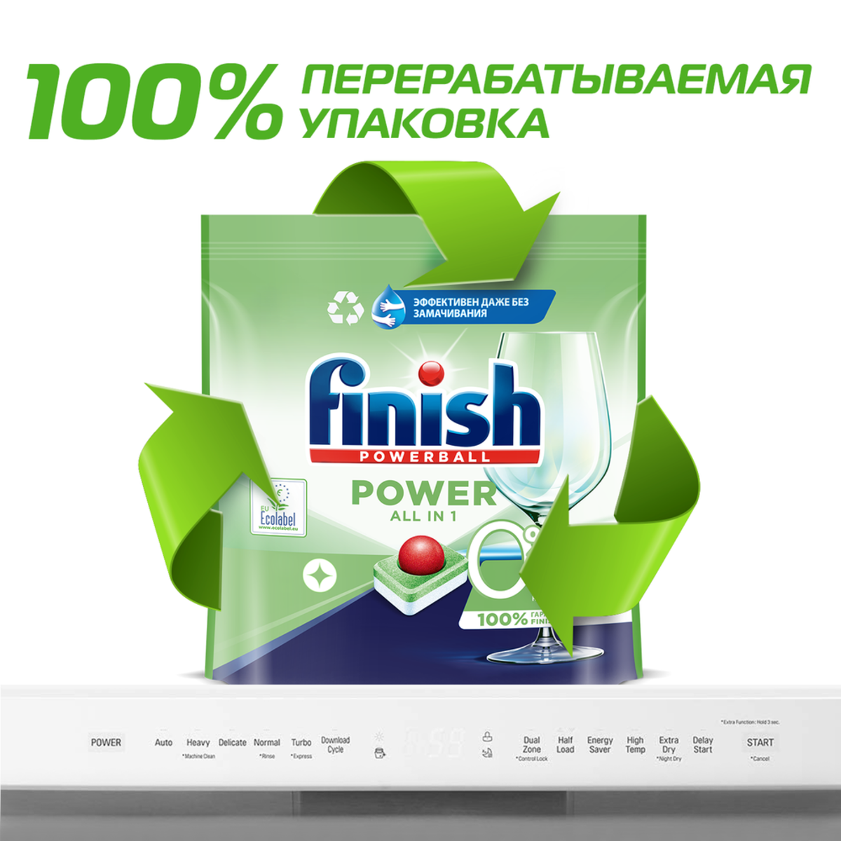 Finish 0% - это удобные в использовании многофункциональные таблетки для посудомоечной машины без фосфатов, ароматизатора и консервантов. Таблетки Finish 0% не имеют ярко выраженного запаха моющих средств и гарантируют бескомпромиссное качество мойки как Finish All in 1 Max, поэтому они борются с любыми загрязнениями и эффективно растворяют жир. Таблетка Finish 0% не содержит лишних компонентов, при этом обеспечивает ослепительную чистоту. Кроме того, упаковка Finish 0% состоит из материала, который подлежит вторичной переработке. Подтвержденная экологичность международным эко-сертификатом.