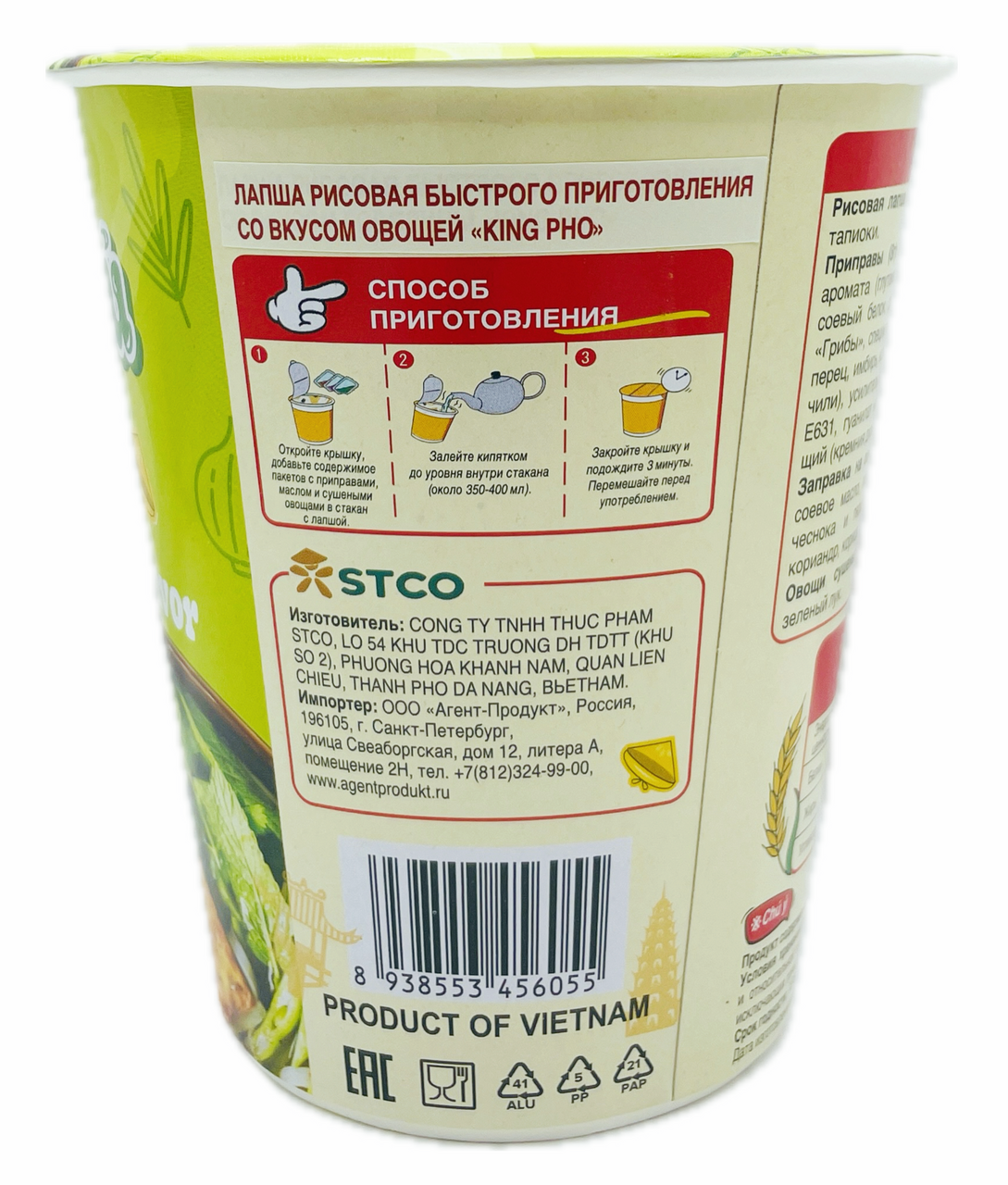 Рисовая лапша King Pho Азбука продуктов - это новый продукт быстрого приготовления, который производится во Вьетнаме компанией STCO, имеющей все необходимые сертификаты, соответствующие международным стандартам. Рисовая лапша King Pho Азбука продуктов соответствует нескольким актуальным тенденциям: растущей популярности азиатской кухни и стабильному спросу на продукты, не требующие длительного приготовления. Лапша быстрого приготовления King Pho Азбука продуктов производится по особой технологии, исключающей этап обжарки в масле. Она сушится естественным способом, что делает рисовую лапшу менее калорийной и сохраняет всю пользу входящих в ее состав микроэлементов. При этом приготовить ее можно всего за 3-5 минут, и вы получите ароматное блюдо в лучших традициях Азии. Рисовая лапша King Pho Азбука продуктов - это хорошая возможность за несколько минут попробовать разнообразные азиатские вкусы по доступной цене для каждого. Это уникальное сочетание вьетнамской кухни и современных технологий приготовления. Эта лапша быстрого приготовления сделана из высококачественного риса, который обеспечивает ее отличную текстуру и вкус. В отличие от пшеничной, азиатская рисовая лапша является более диетической, так как готовится из рисовой муки и высушивается, а не обжаривается. Это значит, что в ней нет избыточного количества жиров и масел, это полезная рисовая лапша.