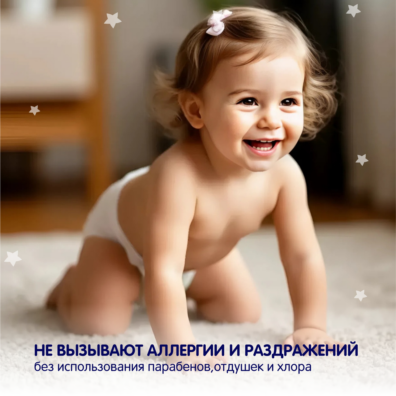 В изготовлении подгузников используется японский абсорбент, который быстро впитывает и удерживает влагу, поддерживая сухость в течение длительного времени. Прилегающий к телу поясок - Эластичный поясок мягко и плотно облегает талию малыша, препятствует подтеканию жидкости вдоль спины. Новый дышащий нижний слой - Моментально распределяет влагу внутри и не дает ей слеживаться, защищает нежную кожу малыша от возникновения ��аздражений, оставляя ее сухой и чистой. Невидимый абсорбирующий слой. Уникальный состав среднего впитывающего слоя обеспечивает быстрое впитывание жидкости и сухую поверхность подгузника, защищая кожу малыша от покраснений.