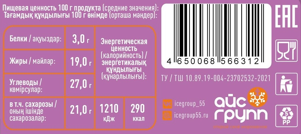 - Тип Замороженный десерт