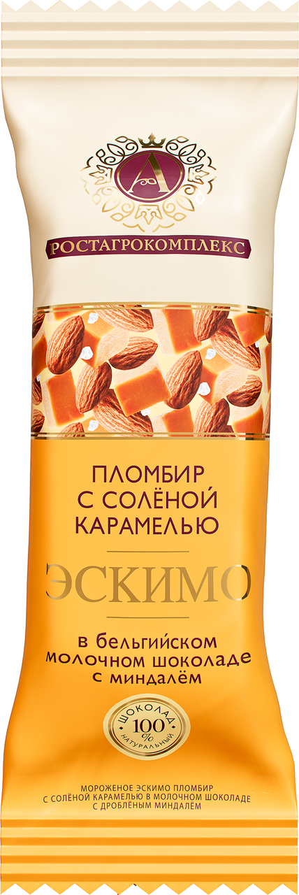 Мороженое пломбир А.Ростагрокомплекс с соленой карамелью и дробленым миндалем эскимо 15%, 65г