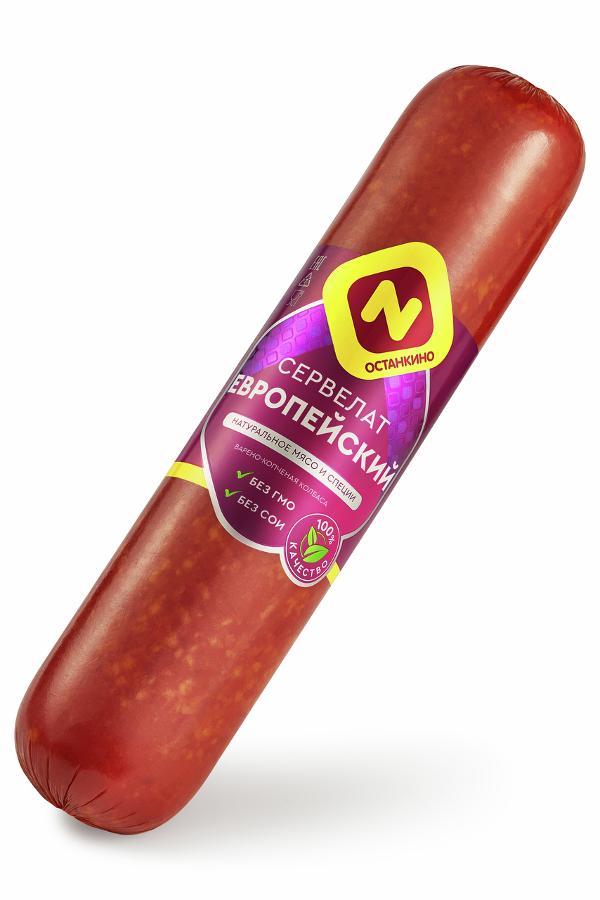 Колбаса Останкино Сервелат Европейский варено-копченая, 660г
