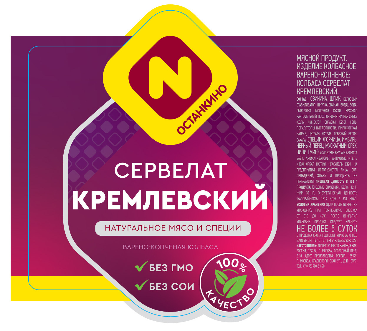 Насыщенный вкус и аромат достигаются благодаря пряным специям, черному перцу и мускатному ореху, а также копчению на натуральной буковой щепе. Сервелат Кремлевский можно нарезать ломтиками и подать к завтраку, а можно проявить немного творчества. Например, использовать его для начинки поджаренных сэндвичей: между двумя тостами выложите хрустящий салат айсберг, сервелат, ломтики помидоров, огурцов и мягкий сливочный сыр.
