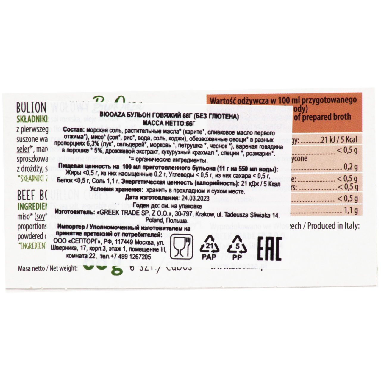 Бульон Biooaza говяжий без глютена, 66г - бульоны составляют основу каждого супа, придавая ему аромат. Именно поэтому мы составили их из ингредиентов органического земледелия, а в некоторых бульонах ограничили избыток соли. Прекрасная добавка к супам, соусам и тушеным блюдам. Без глютена. Без искусственных красителей.