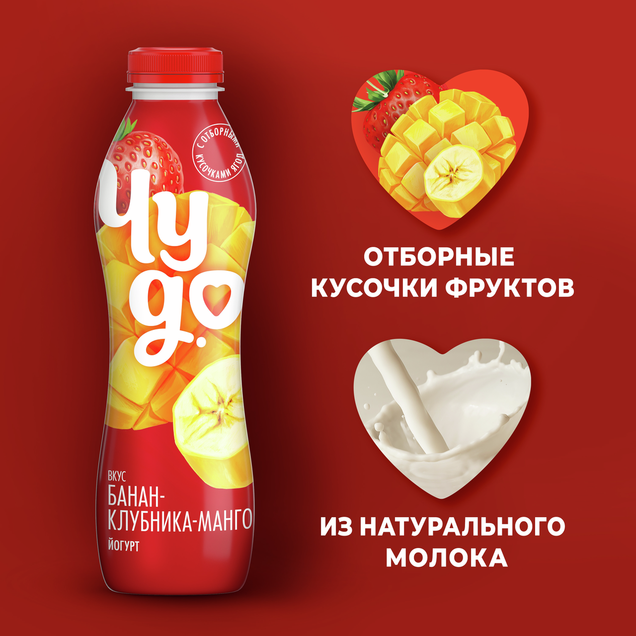 Йогурт питьевой Чудо Банан-клубника-манго 1.9%, 680г