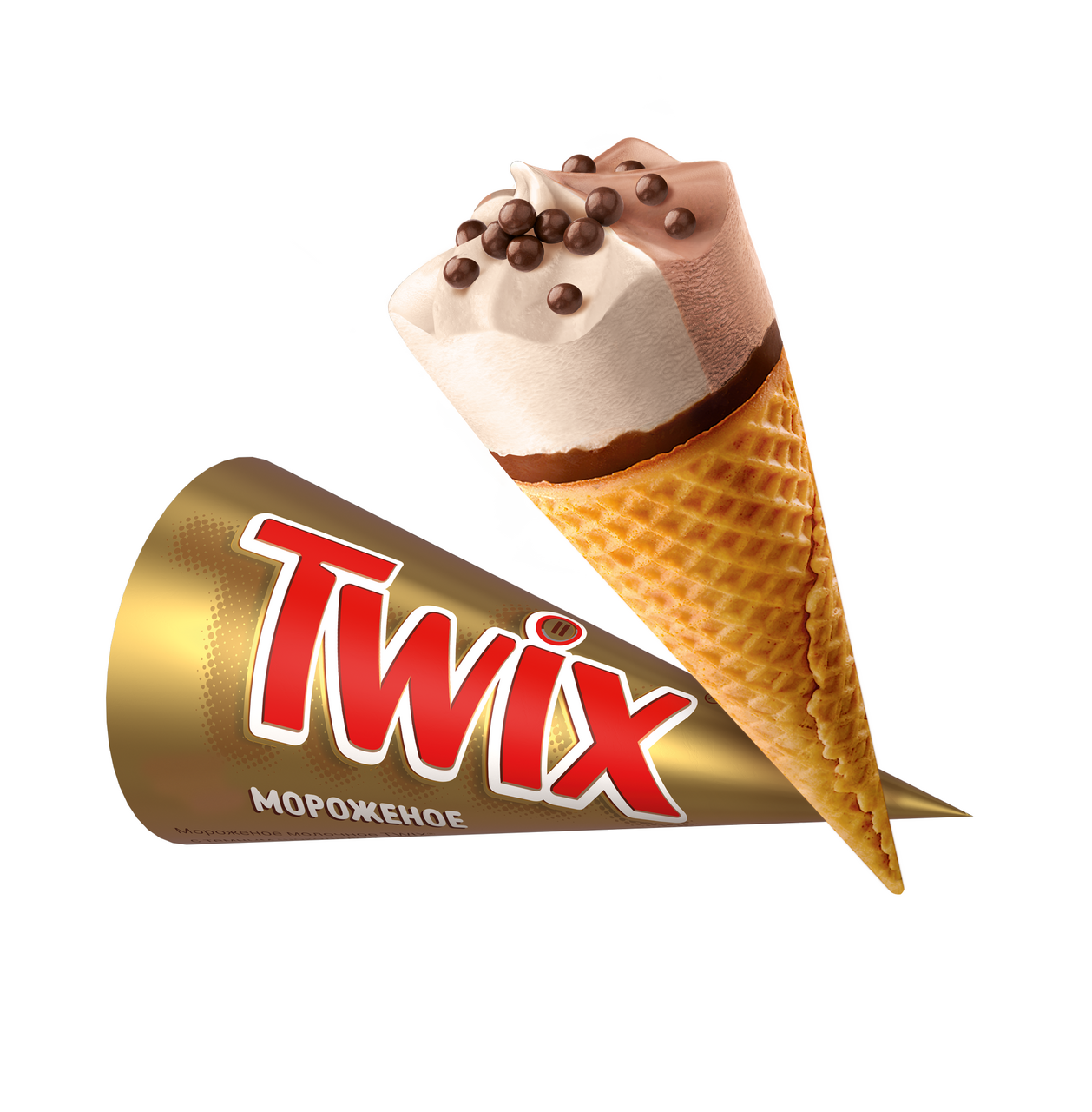 Мороженое молочное Twix Карамель и какао в вафельном рожке 5%, 68г