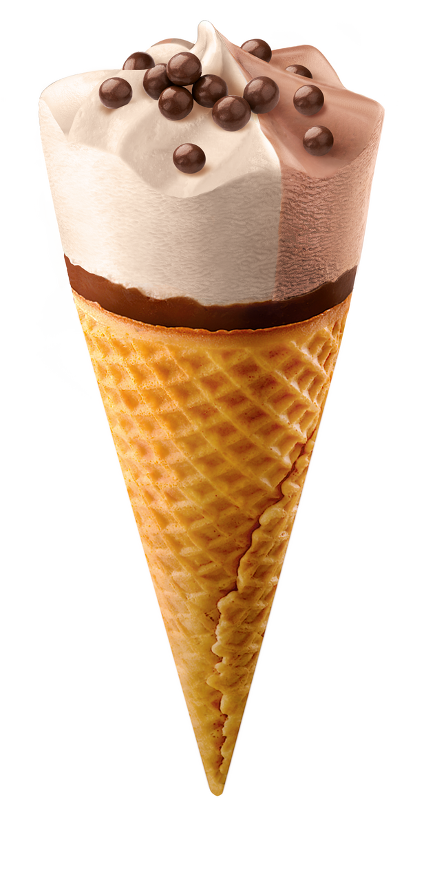 Мороженое двухслойное молочное со вкусом карамели и молочное с какао-порошком, с карамелью, рисовыми шариками в молочном шоколаде, в вафельном сахарном рожке с глазурью. Представляет собой идеальное контрастное сочетание густой карамели и хрустящего печенья. Маленький кусочек радости может изменить день к лучшему. Отлично подходит, чтобы немного побаловать себя после напряжённого дня. Попробуйте вместе с кофе или чаем, чтобы сделать поездку на работу или учёбу более приятной.