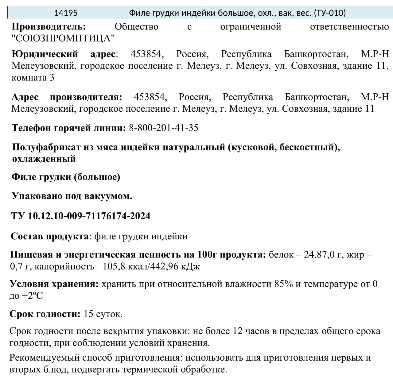 Крупное, постное мясо индейки с грудной части, мясо постное, диетическое. Можно использовать для приготовления первых и вторых блюд, а также мясных салатов и шашлыка. Подходит для обжаривания на сковороде, гриле и решетке мангала. Филе можно запекать целиком в фольге или рукаве в духовке или резать на порционные кусочки и тушить, например, с овощами в мультиварке.