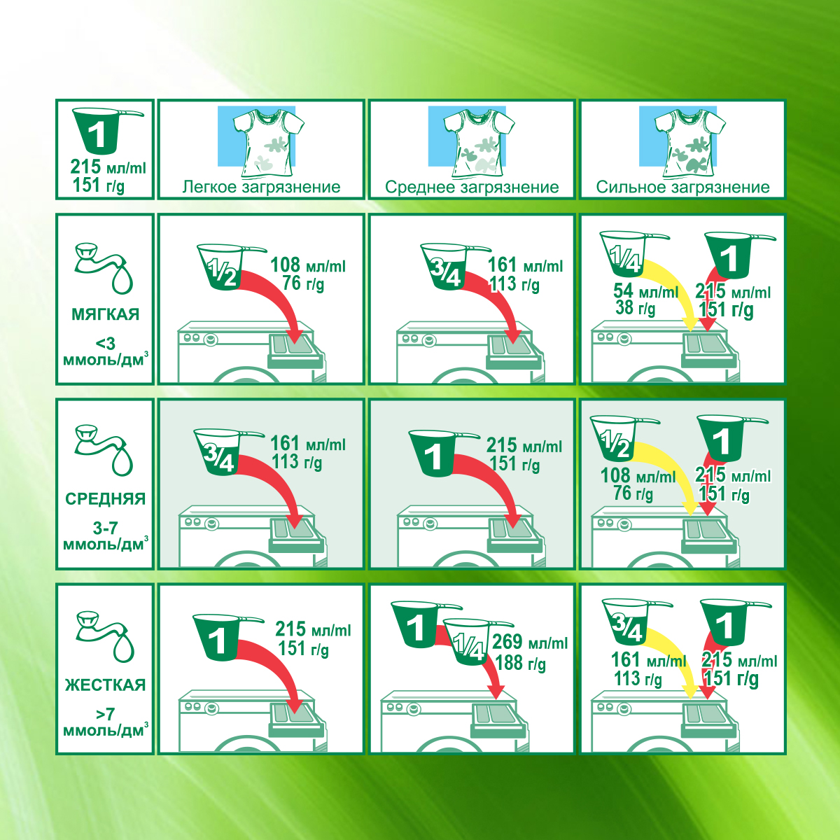 5% или более, но менее 15%: анионные ПАВ; менее 5%: неионогенные ПАВ, поликарбоксилаты, оптический отбеливатель, ароматизирующая добавка.