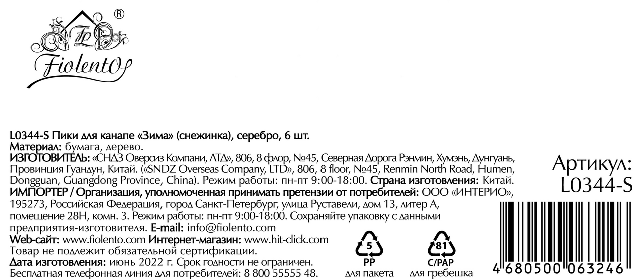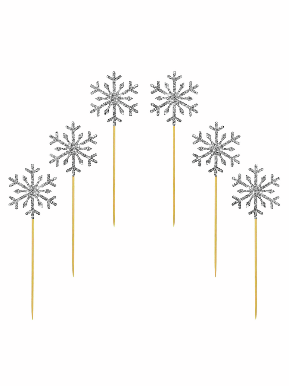 Пики для канапе Fiolento Зима снежинка серебряные, 6шт